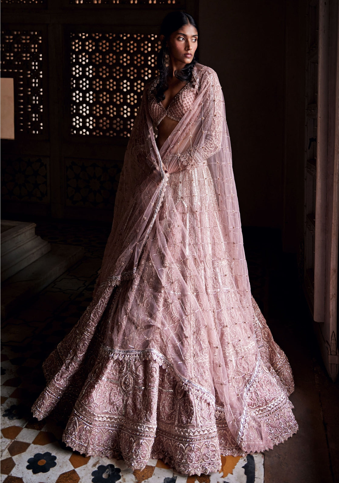 Embrace delicate elegance with our Blush Pink Tone-on-Tone Embroidered Bridal Lehenga. The soft blush pink hue, paired with intricate tone-on-tone embroidery, creates a subtle yet breathtakingly beautiful design. Crafted with luxurious fabrics and attention to detail, this lehenga exudes femininity and grace, perfect for the bride who desires a refined and timeless look. Step into your special day with a piece that reflects your elegance, charm, and the quiet beauty of love, making every moment unforgettable.