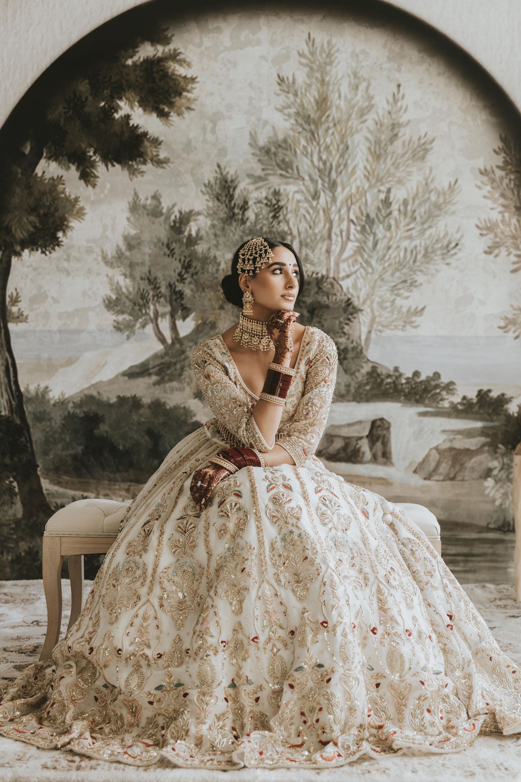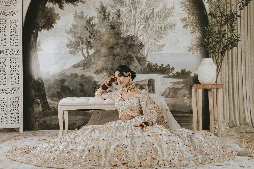 - Adorned with intricate gold embroidery, including Zardozi, Resham, and Dabka workmanship.