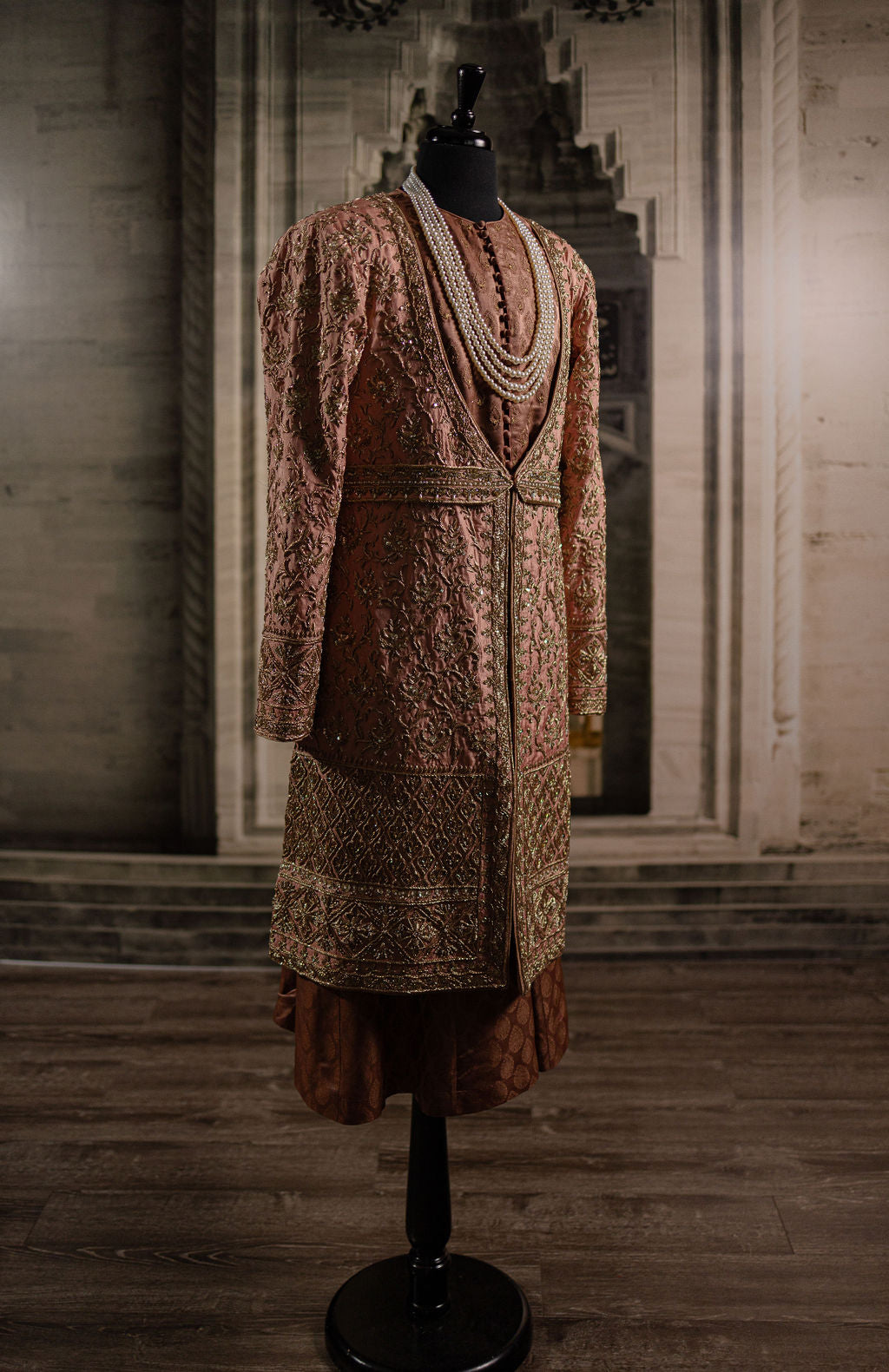 Exude timeless charm with our V-Cut Peach Shervani, designed to offer a sophisticated yet contemporary look for the modern groom. The soft peach hue combined with the elegant V-cut adds a flattering, sharp silhouette, ensuring you stand out with grace. Crafted from luxurious fabric, this Shervani provides both comfort and style, making it perfect for any special occasion. Fully customizable, it allows you to tailor every detail for a flawless fit and a personalized look that reflects your unique sense of style.